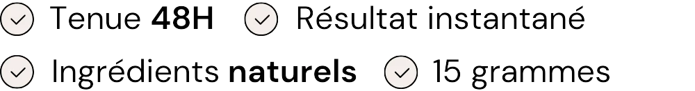 Tenue longue durée : cette accroche naturelle empêche la poudre de couler ou de glisser, même sous la douche, à la salle de sport ou au vent.